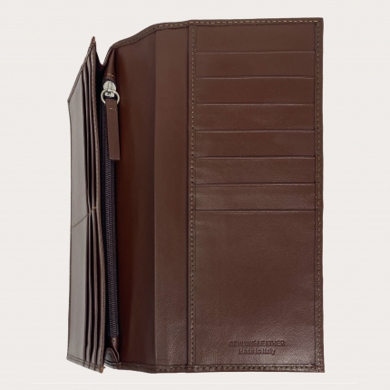 Ausgestattet mit zahlreichen Fächern und einem Reißverschlussschieber aus Leder ist es perfekt, um all Ihre Dokumente und Bargeld bequem bei sich zu tragen, ohne auf die Eleganz von exotischem Leder zu verzichten. 100 % in Italien hergestellt.