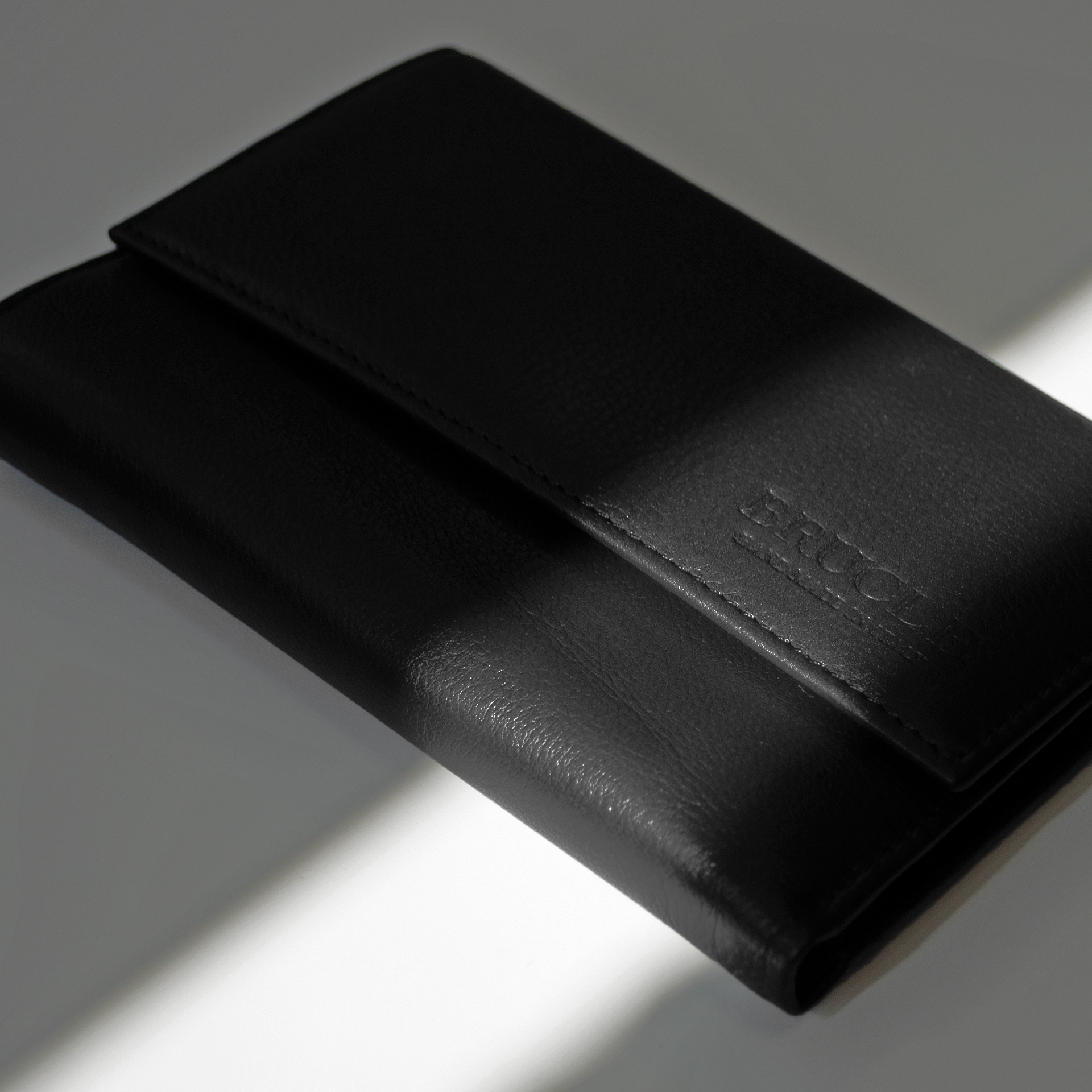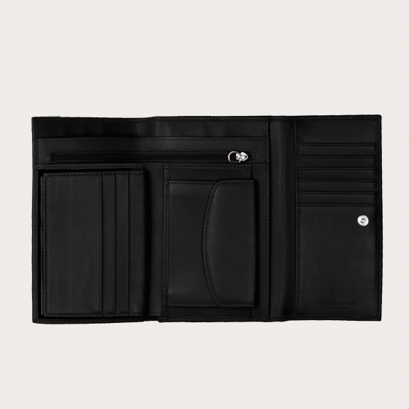 Geldbörse aus echtem Vollnarbenleder mit Kartenfach, Dokumentenfach und Geldbörse, Farbe schwarz