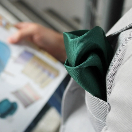 Raffiniertes Einstecktuch aus eleganter italienischer Jacquard-Seide, gesponnen im Comer Viertel. Das weiß-schwarze Mikromuster macht es besonders vielseitig und anpassungsfähig an jede Art von formellem Outfit.
