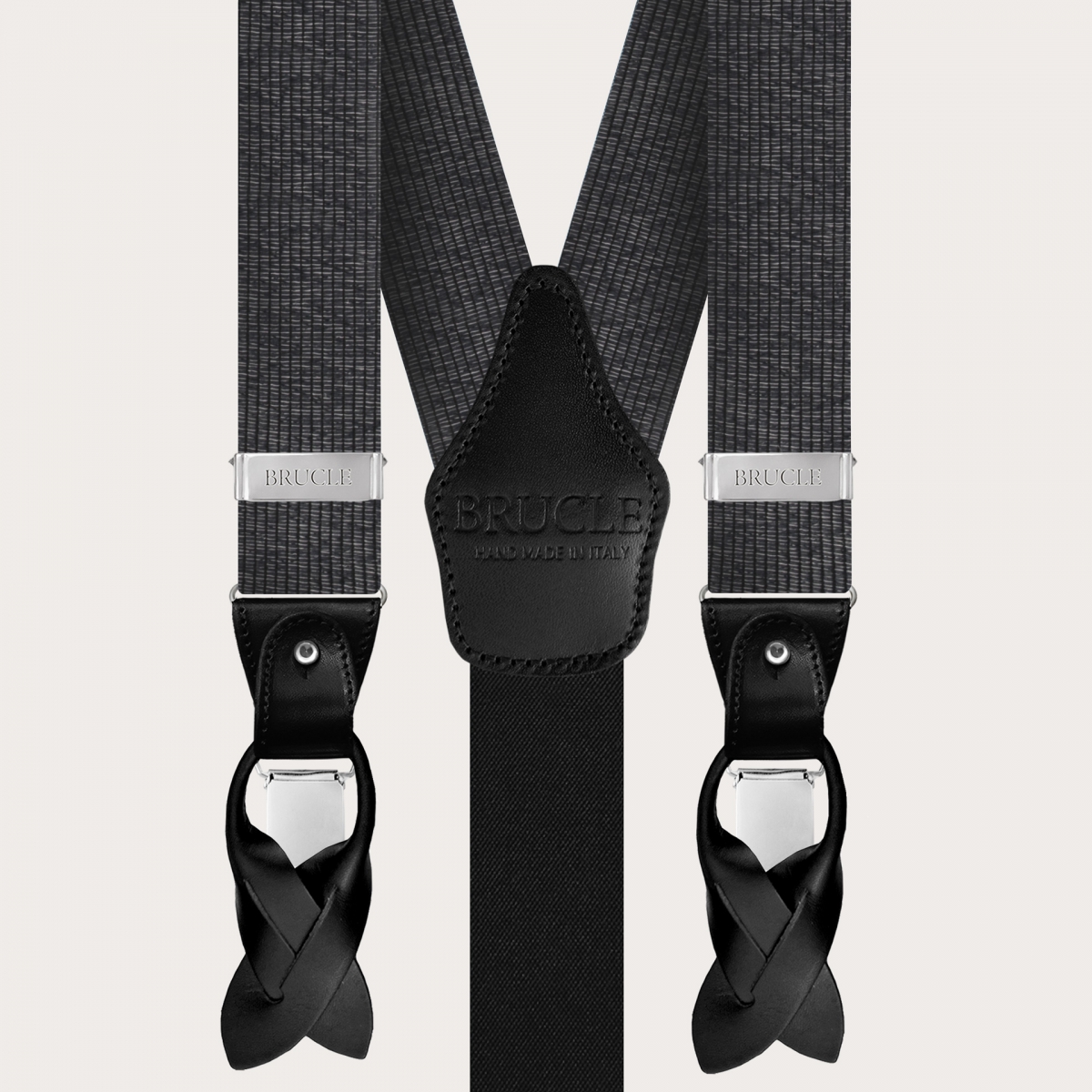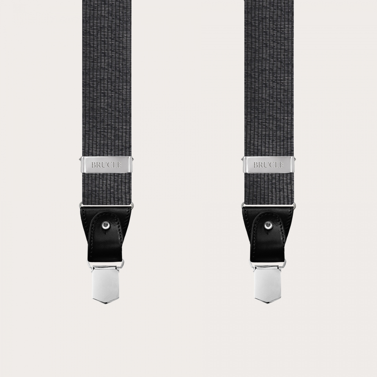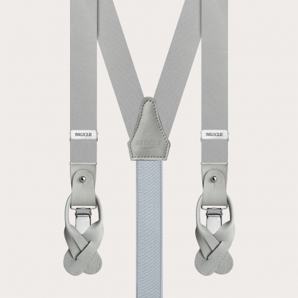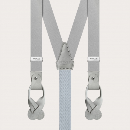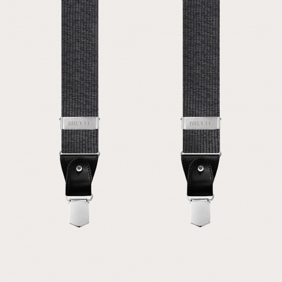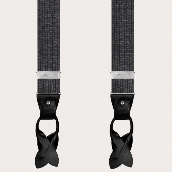 Graue Hosenträger aus Seidensatin mit Knopflöchern