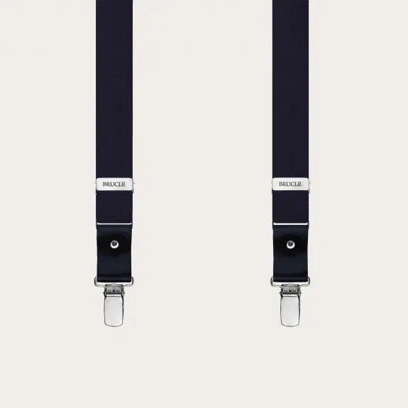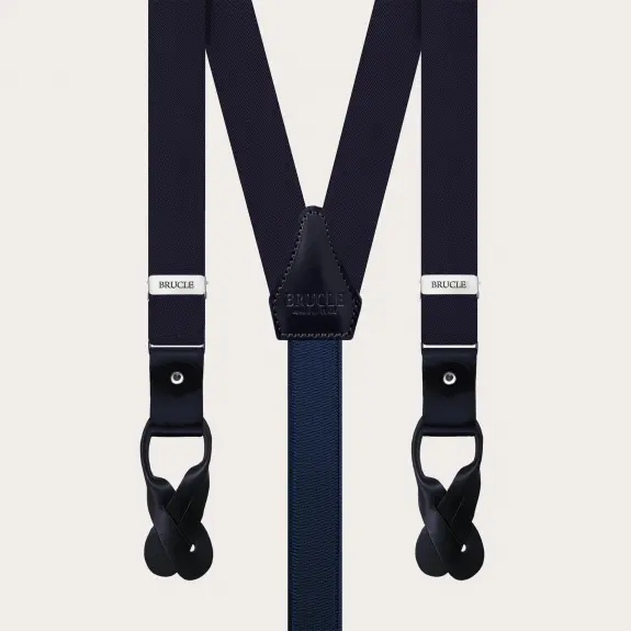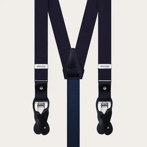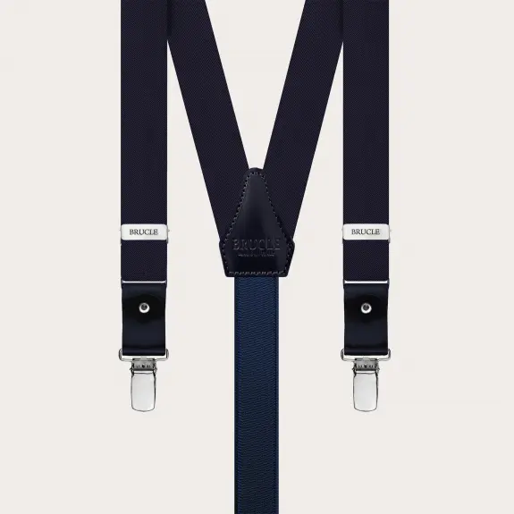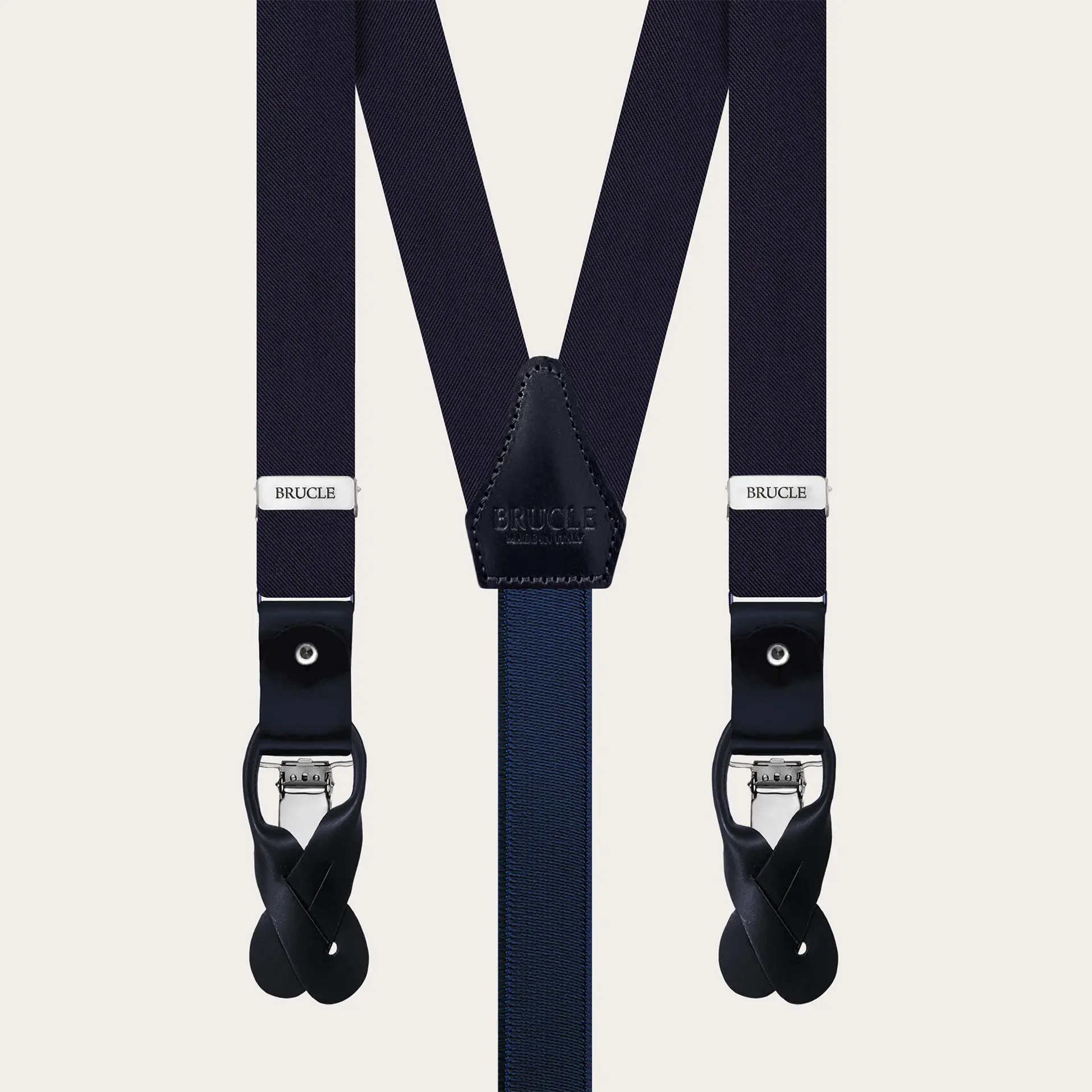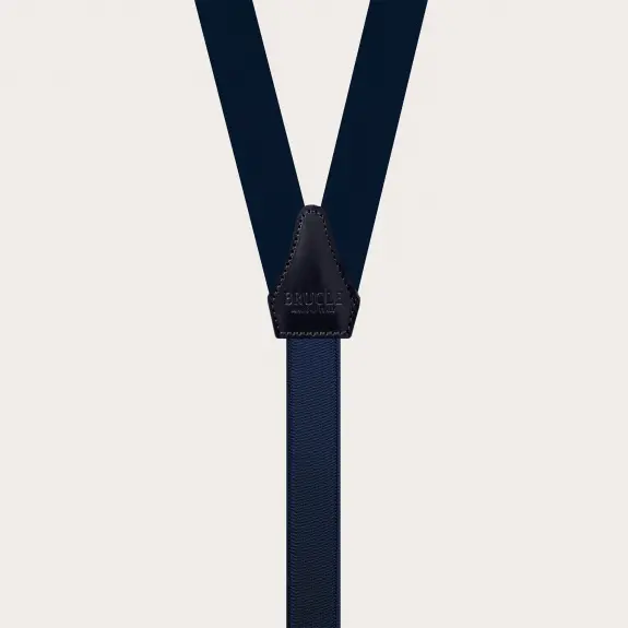 Schmale Herrenhosenträger aus marineblauem Seidensatin, zu verwenden mit Clips oder Lederschlaufen für Knöpfe.