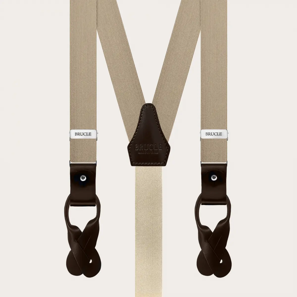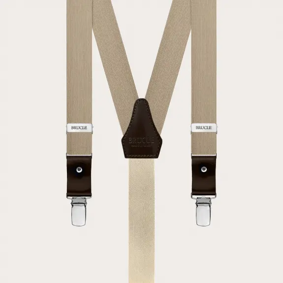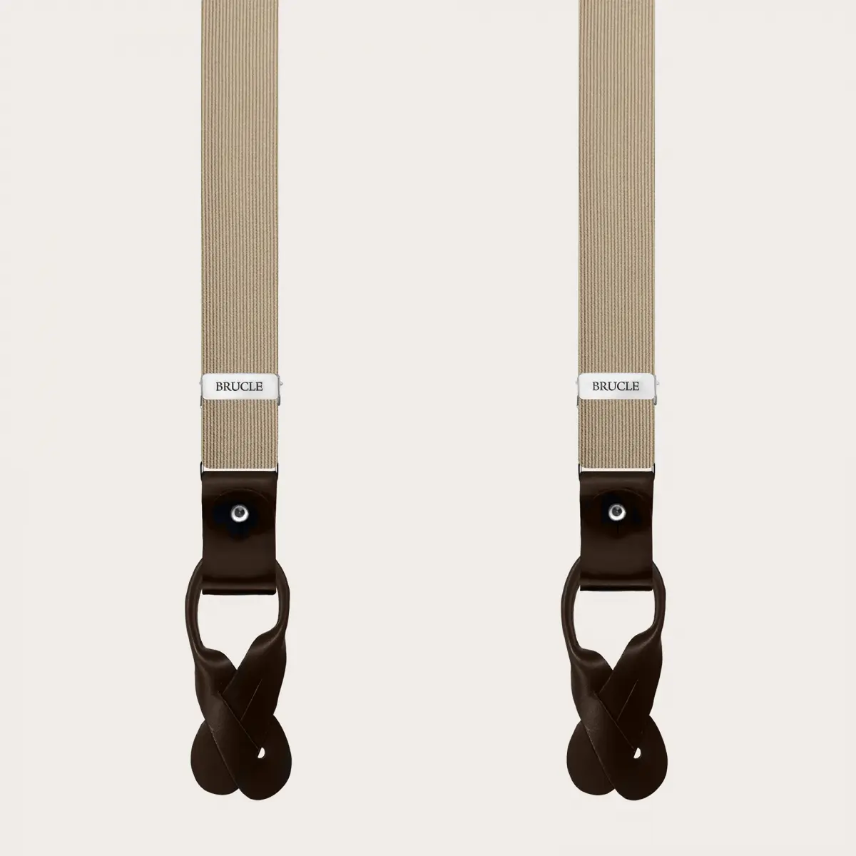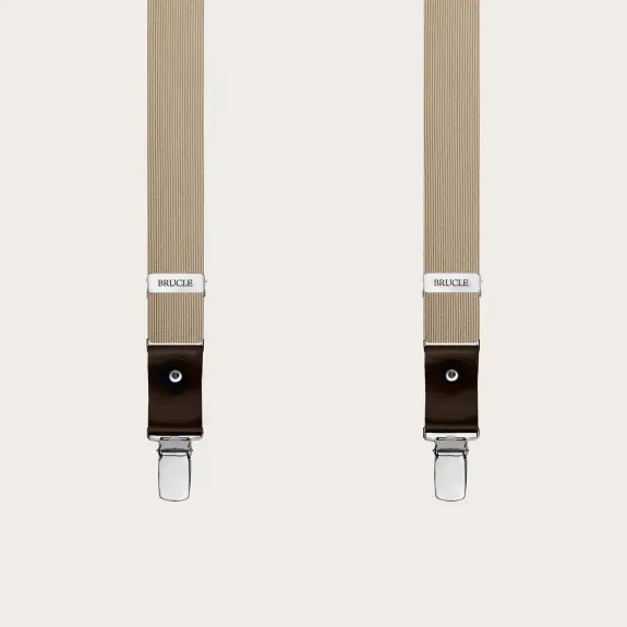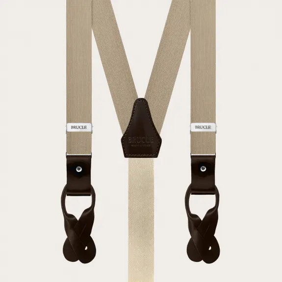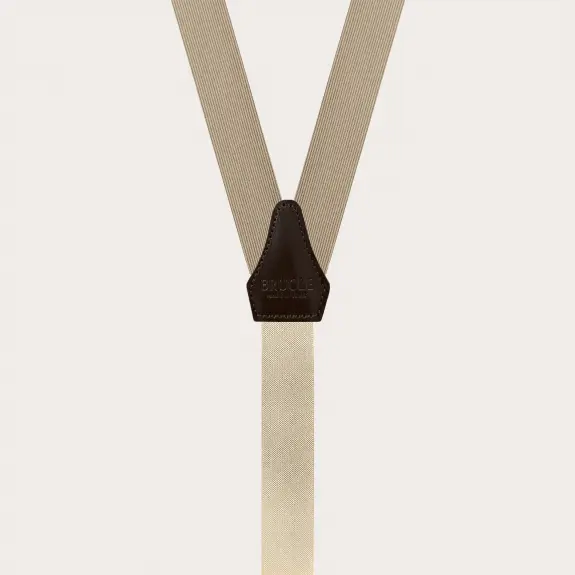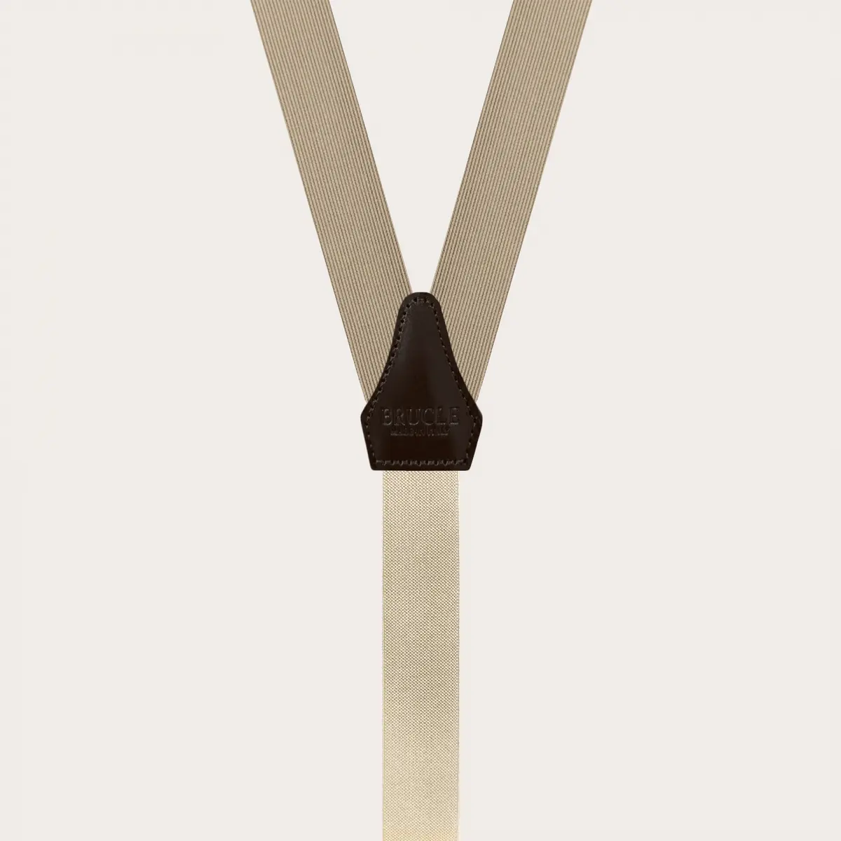 Schmale Hosenträger in Champagnerfarbe zum Tragen mit Knöpfen oder Clips.