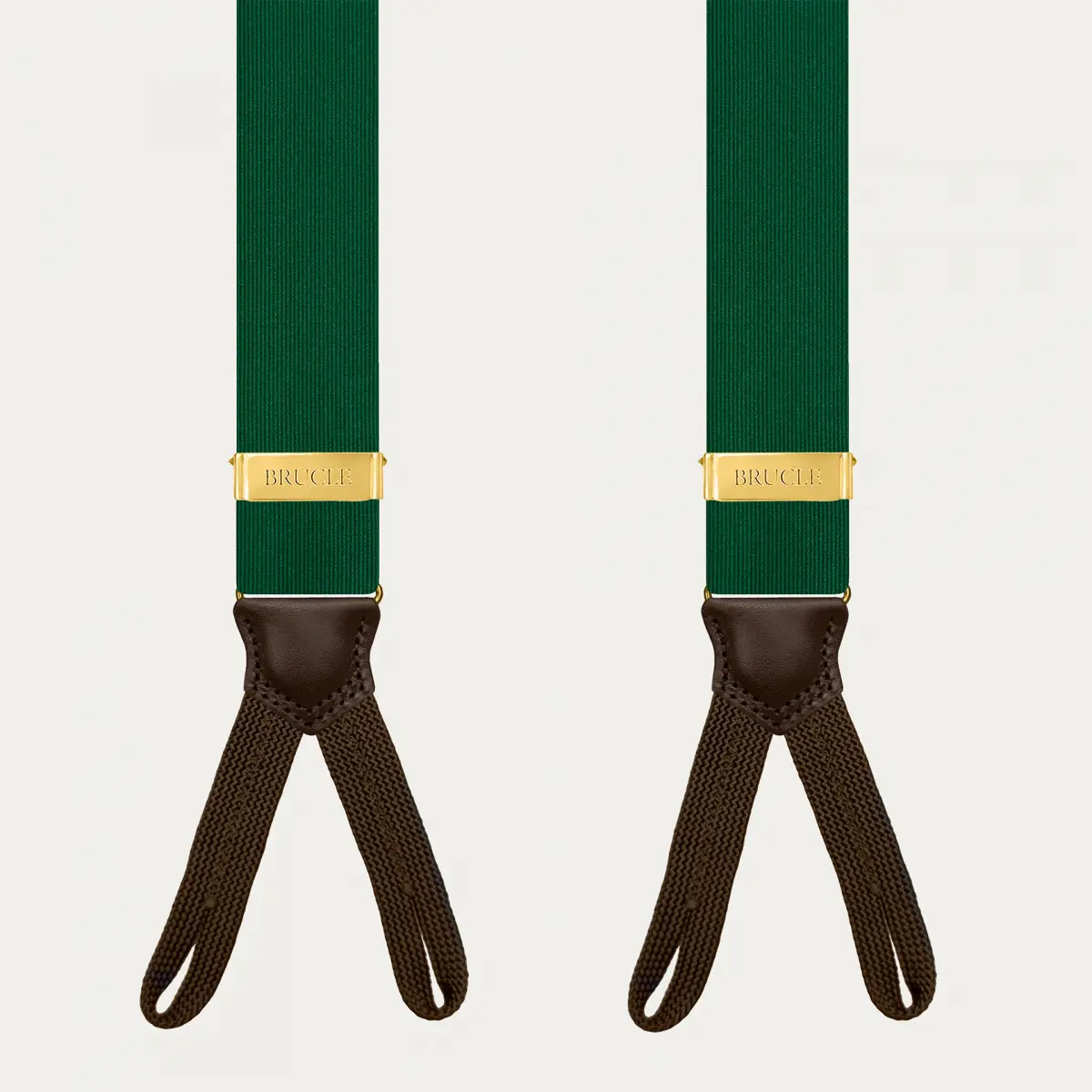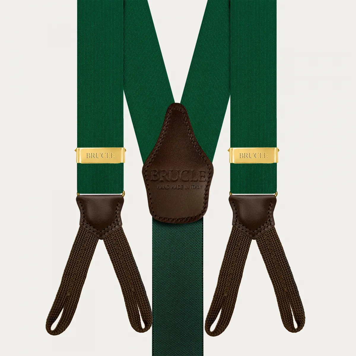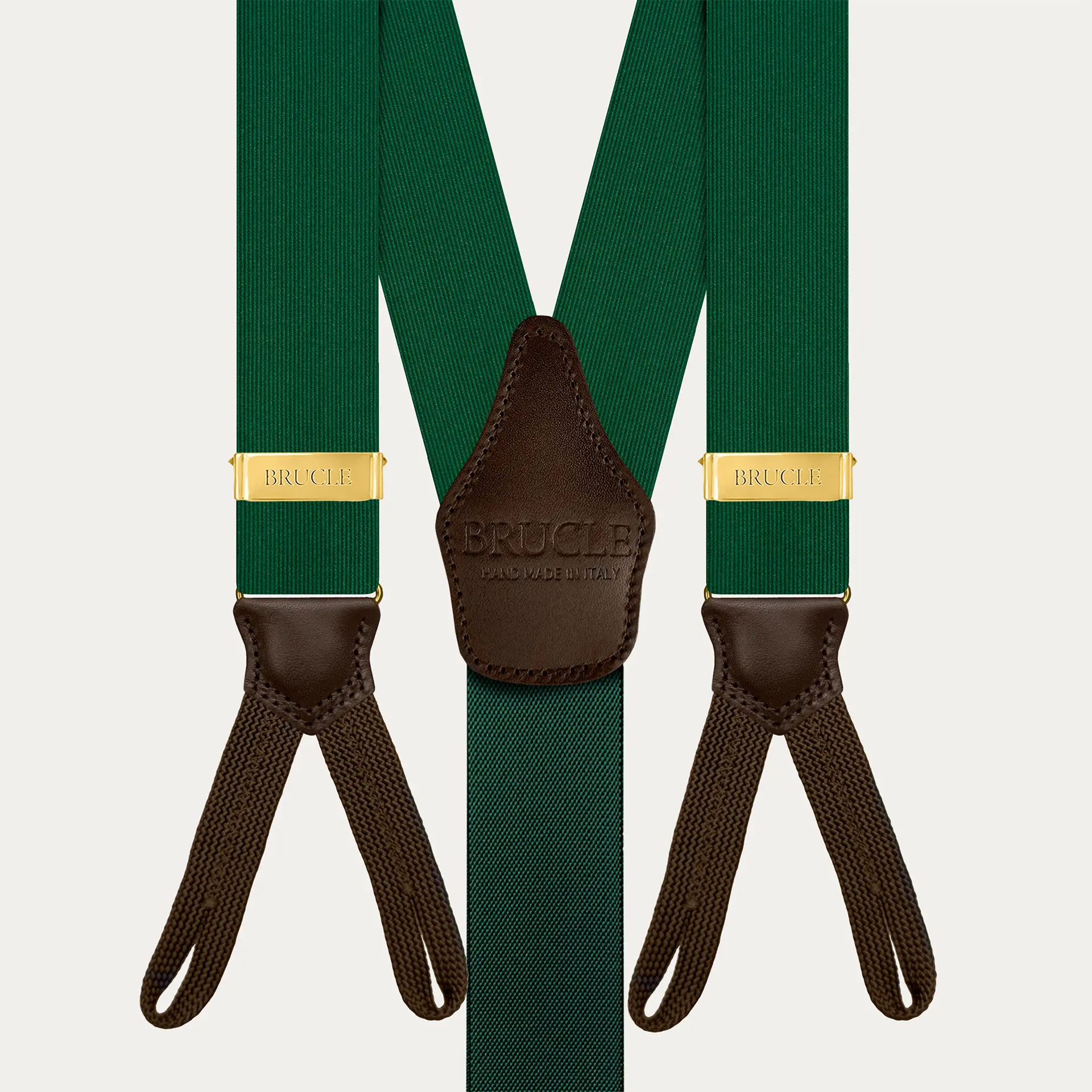 Die grünen und goldenen Hosenträger verkörpern eine perfekte Mischung aus Raffinesse und Qualität und unterstreichen die Klasse und den Stil des wahren Made in Italy.