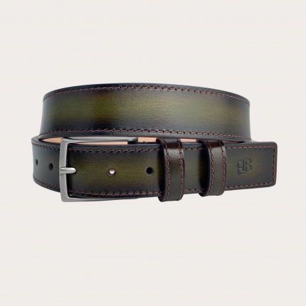 Handgefärbter Ledergürtel in Grün mit braunen Schattierungen
