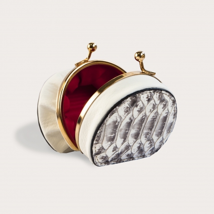 Elegante Damenbrieftasche aus Pythonleder, platinfarben