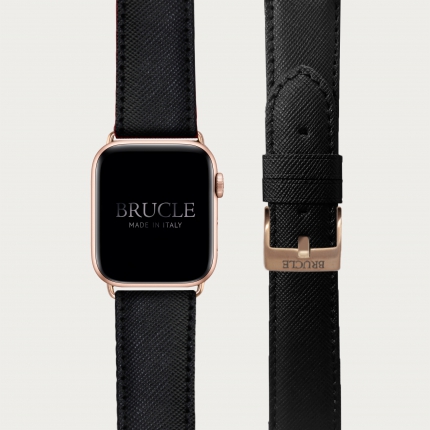 Artisanal watch and smartwatch strap made in Italy, with semi-padded structure, nubuck lining and matching stitching.