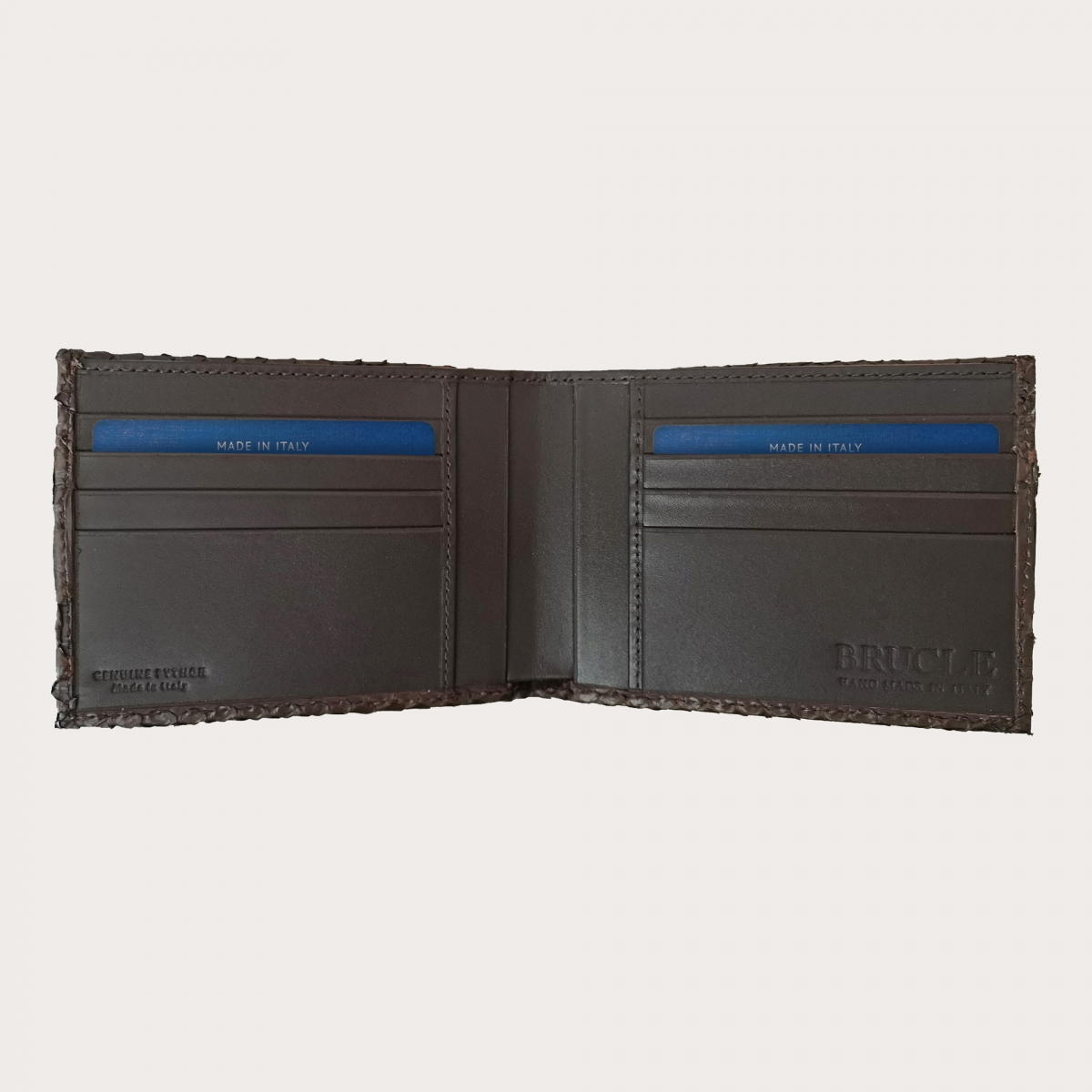Men's dark brown python leather wallet handmade in Italy. Perfect for a refined and elegant man looking for a luxurious, artisanal and high-quality product. Crafted from genuine reticulated python leather certified by CITES, each wallet is a unique piece. Very spacious, it holds 8 credit cards or IDs and features a double pocket for documents. Free personalization with engraving makes it a perfect gift idea.