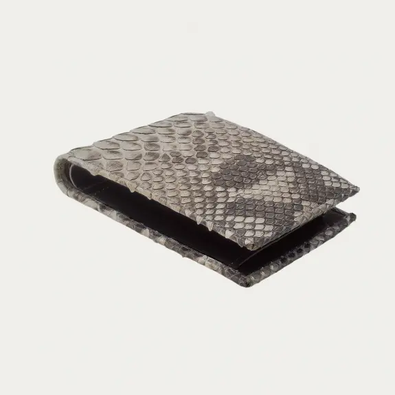 Men's Python Wallet with coin pocket, in classic hand-patinated mud color that enhances the natural beauty of genuine exotic python leather.