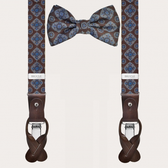 Get inspiredCoordinated suspenders and bowtie in silk, dotted blue