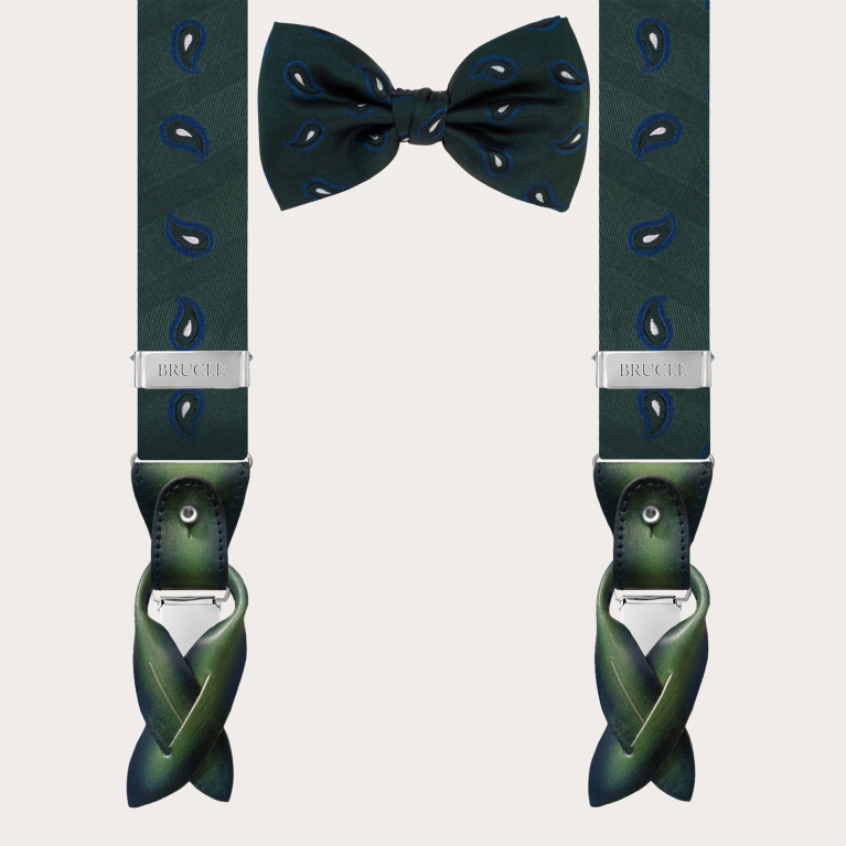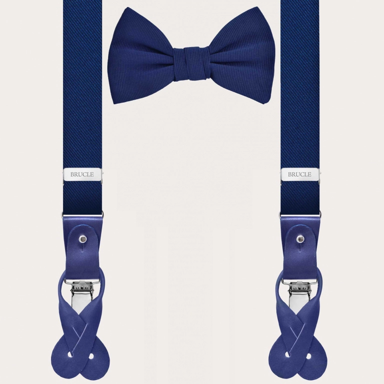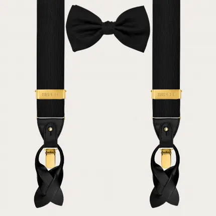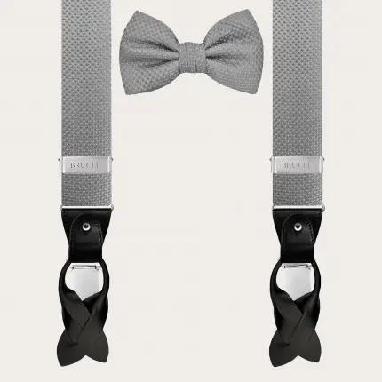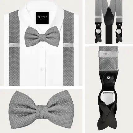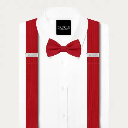 Discover the elegant matching silk set of red suspenders and bow tie: a perfect ensemble for ceremonies and your important events.