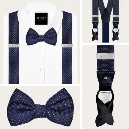 Blue Silk Suspenders with Polka Dots and Red Bow Tie