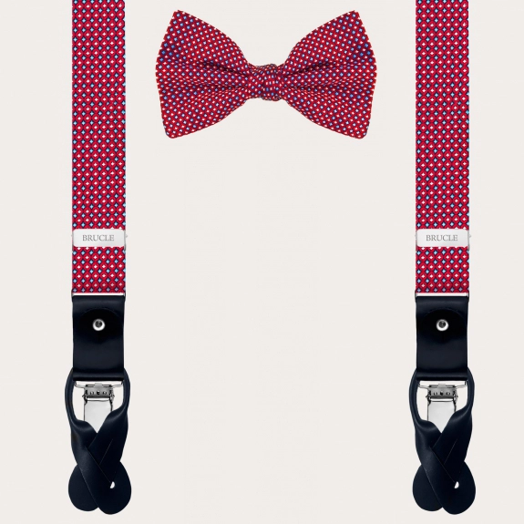 Package consisting of suspenders and bow tie made of Italian silk; a particularly bright silk model in shades of blue sky, perfect for ceremonial occasions.