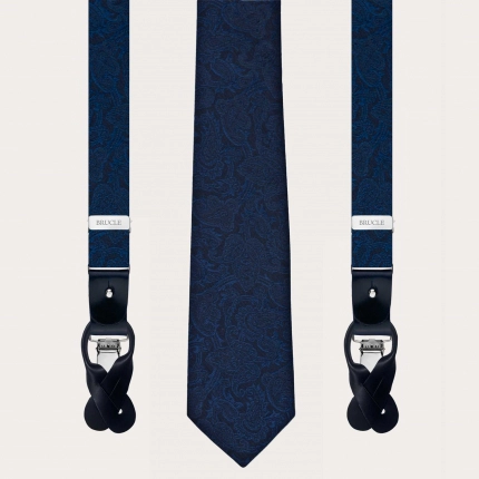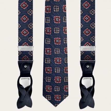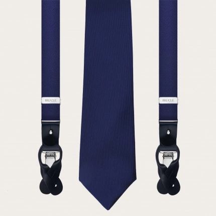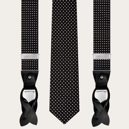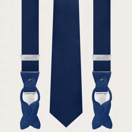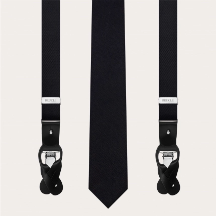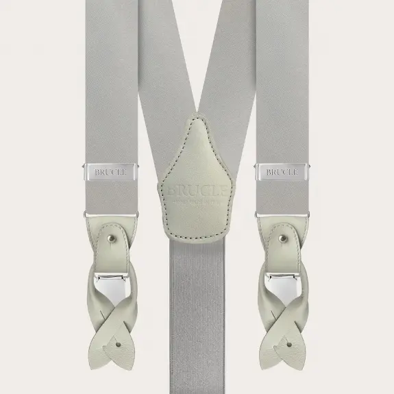 Package consisting of suspenders and tie made of Italian silk satin, grey.