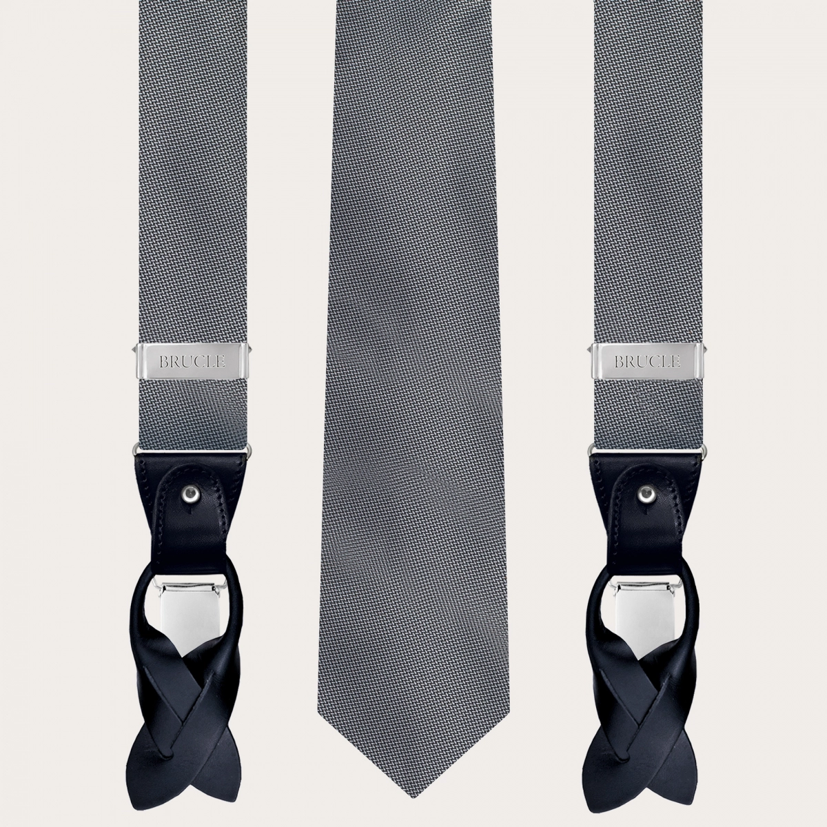 Package consisting of suspenders and tie made of Italian silk satin, grey.