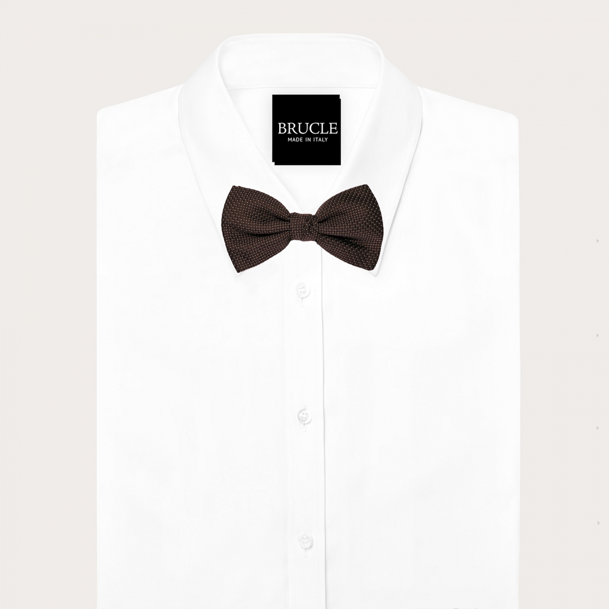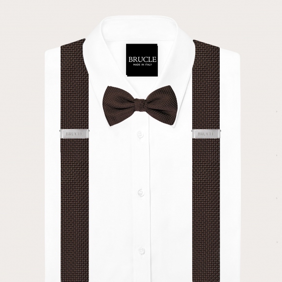 Matching suspenders and tie set in brown pin-dot silk, elegant and refined, handmade in Italy.
