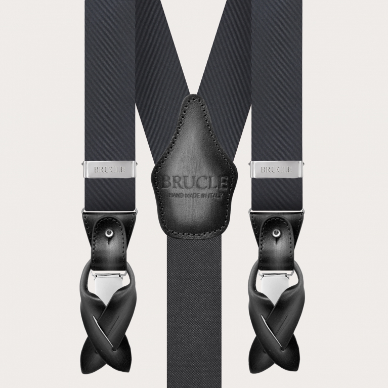 The suspenders can be customized with engravings on the leather parts, adding a touch of exclusivity.