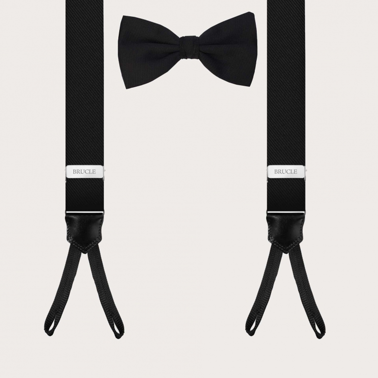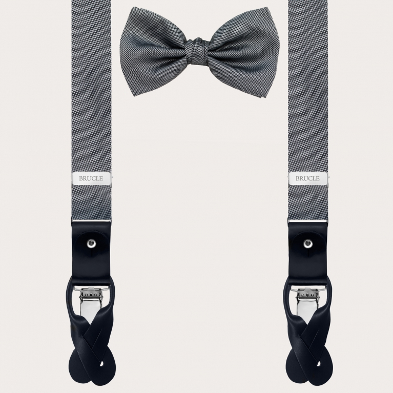 If you're looking for the perfect accessory to elevate your outfit, the Brucle silk suspenders and bow tie set is the ideal choice.