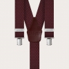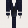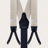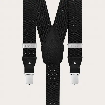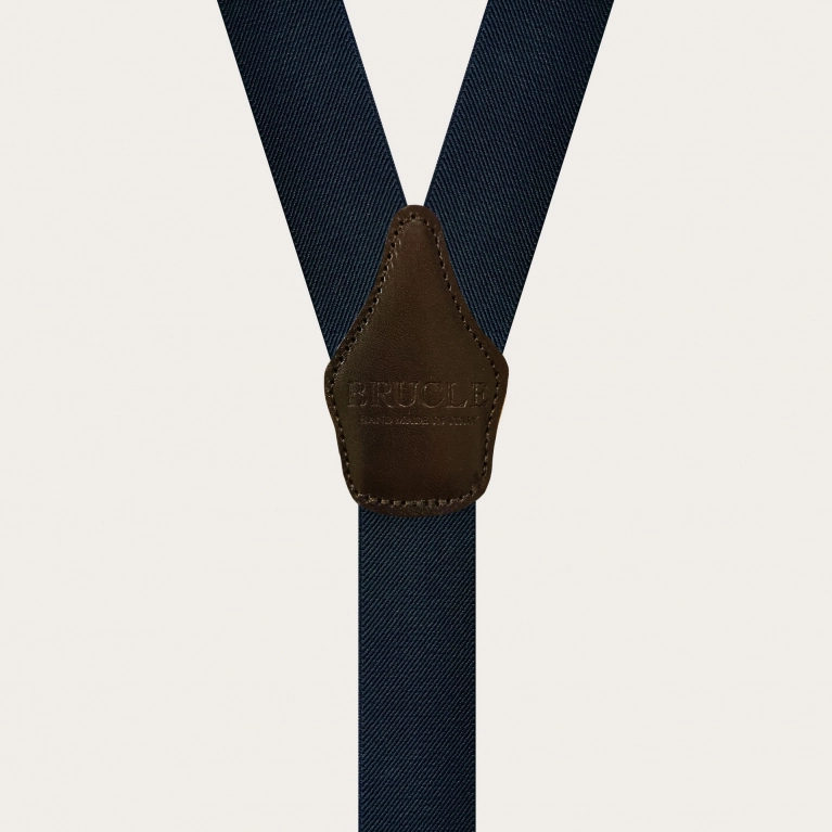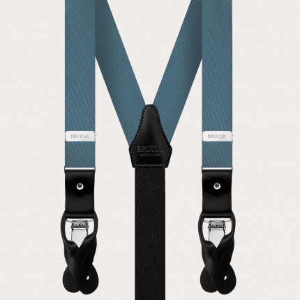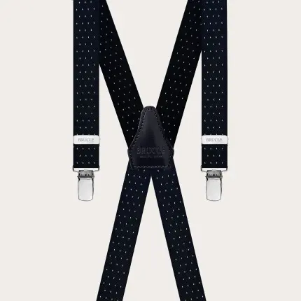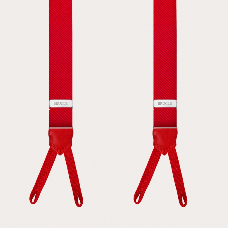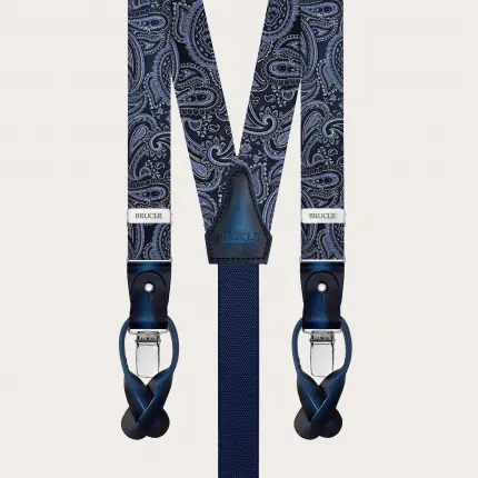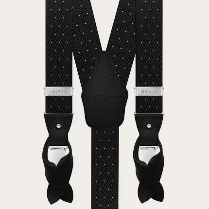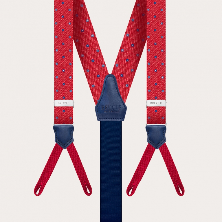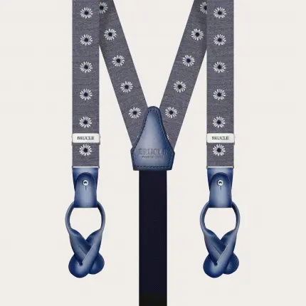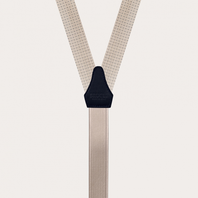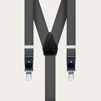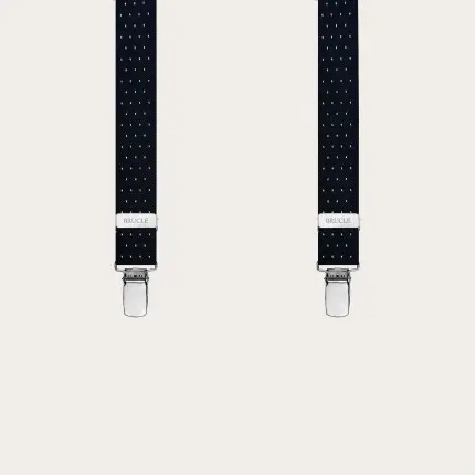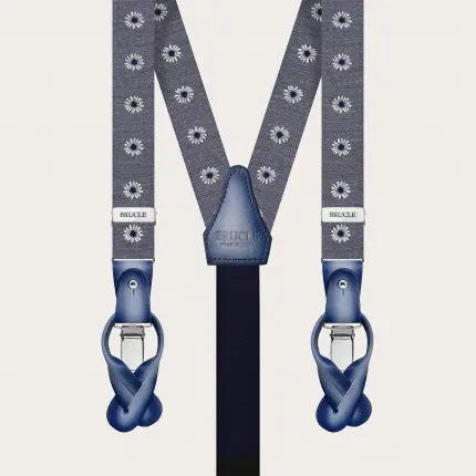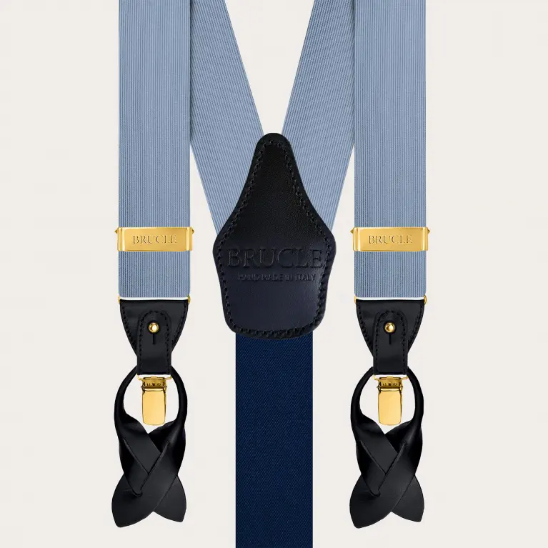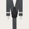 Men's suspenders have become an increasingly dominant accessory in men's fashion. This is why we offer a collection designed to satisfy even the most discerning customers, with a wide variety of models and style suggestions. We carry men's elastic suspenders, those with a translucent satin effect, in addition to leather or silk suspenders. These can be worn with clips or buttons, and are customizable and made to measure. The line is completed with clip replacements and other essential accessories.