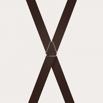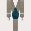 Striped suspenders in warm shades of brown and khaki, complemented by an adjustable metal back that makes these braces stylish as well as comfortable.