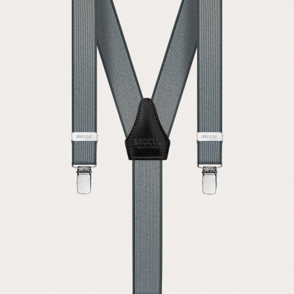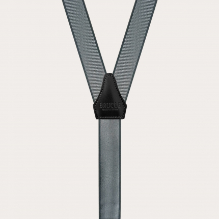 Men's suspenders have become an increasingly dominant accessory in men's fashion. This is why we offer a collection designed to satisfy even the most discerning customers, with a wide variety of models and style suggestions. We carry men's elastic suspenders, those with a translucent satin effect, in addition to leather or silk suspenders. These can be worn with clips or buttons, and are customizable and made to measure. The line is completed with clip replacements and other essential accessories.