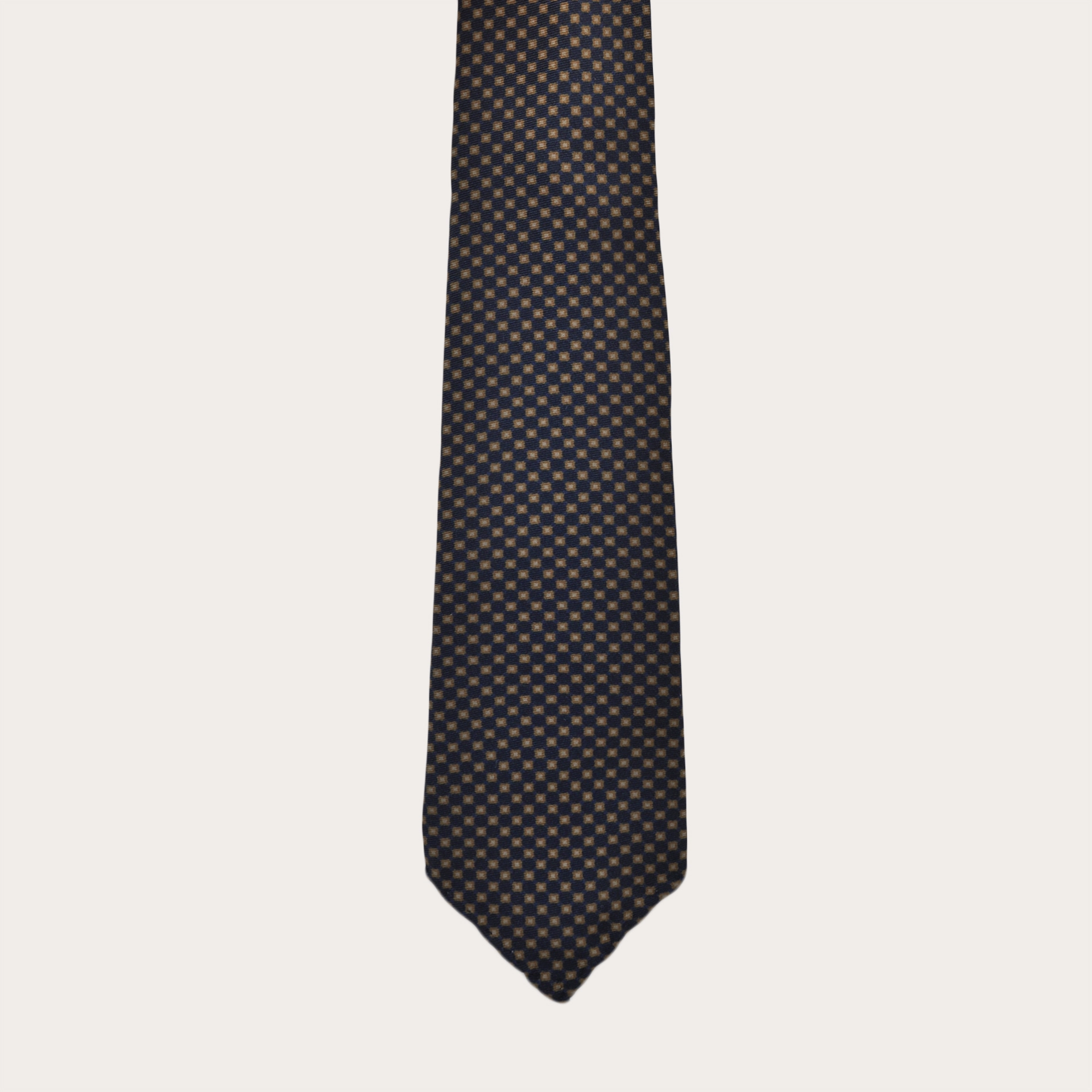 An elegant blue and gold pattern for the new BRUCLE silk unlined necktie collection. A 100% Made in Italy accessory, handmade with the best silks of the Como district.
