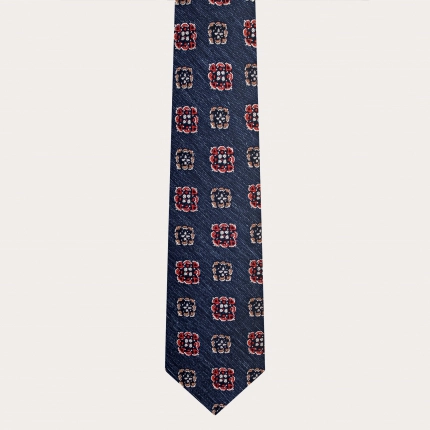 Elegant men's tie in jacquard silk with a silver micro-pattern with a navy blue soul. This tie is perfect for formal events and ceremonies, handcrafted using a low environmental impact production chain.