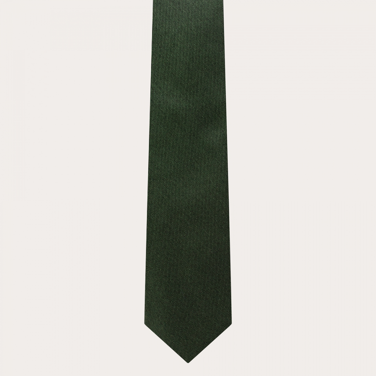 This green silk men's tie is an ode to refinement and absolute elegance. Its intense forest green evokes nature, while the made in Italy workmanship enhances its quality. Made entirely of silk, this accessory gives a touch of luxury to any outfit. For those looking for a classy gift idea, this tie represents a refined gift of timeless beauty.
