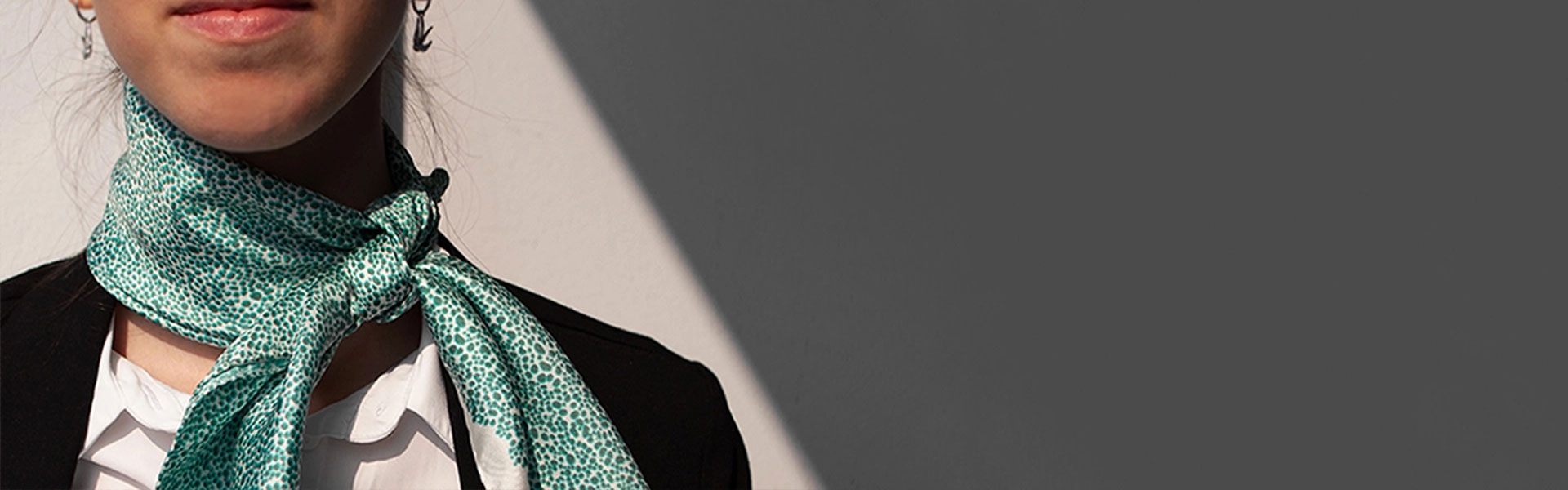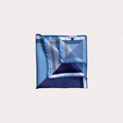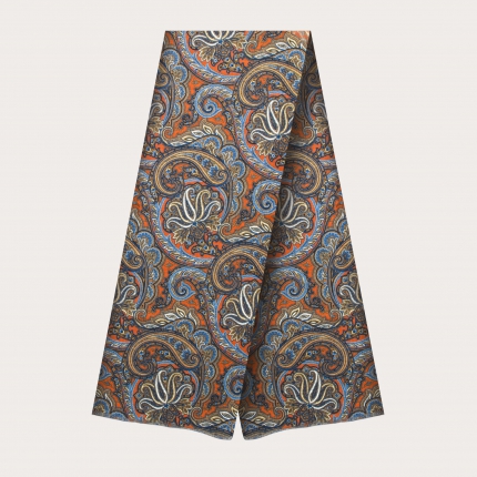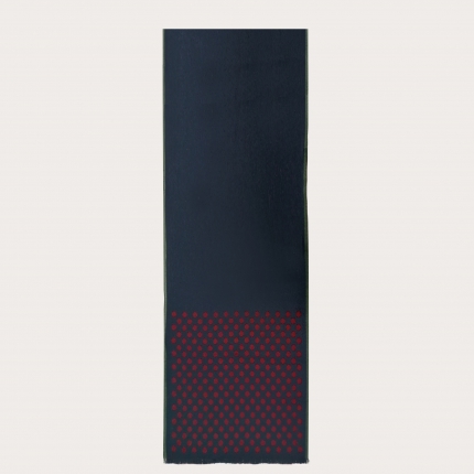 Long scarf in modal, linen and silk, blue and green geometric patterns