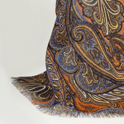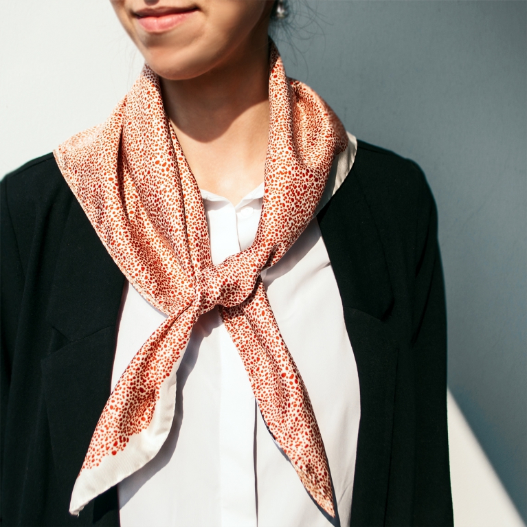 Soft modal and cashmere foulard, cream color with black and white decorations