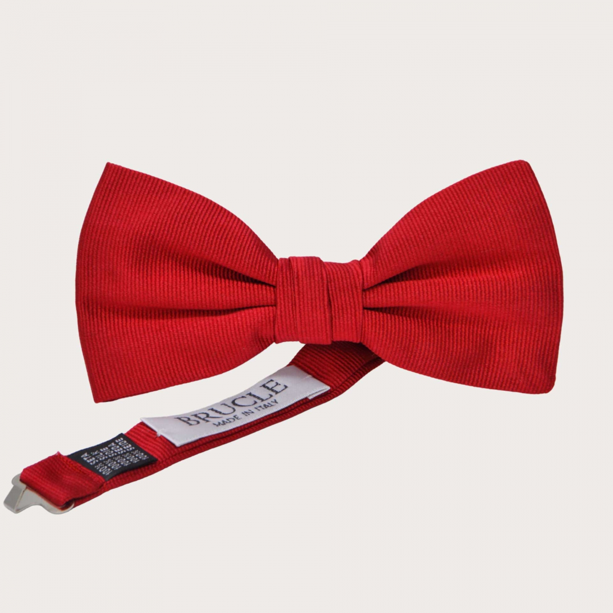 Elegant red bow tie in Brucle jacquard silk, a handcrafted, high-quality accessory.