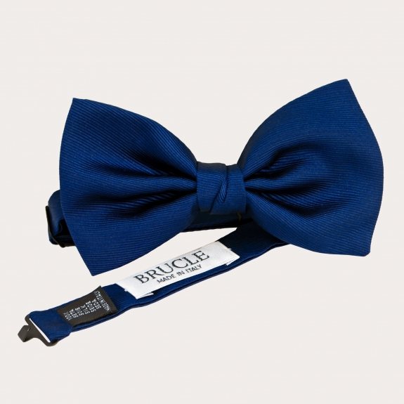 Made from lustrous silk, smart and luxurious, Blue navy Silk Pre-tied Men's Bow Tie from Brucle, 100% Made in Italy.