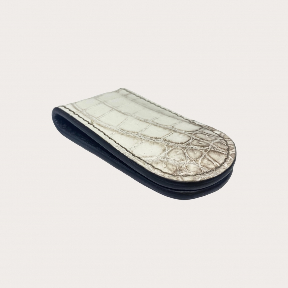 Discover the elegance of the magnetic money clip in genuine Himalayan white crocodile leather.