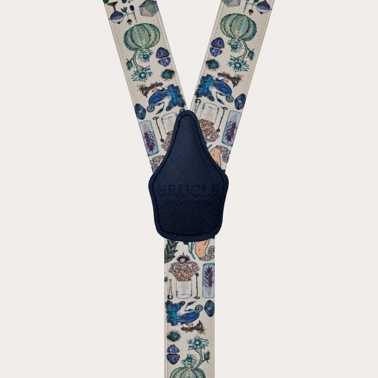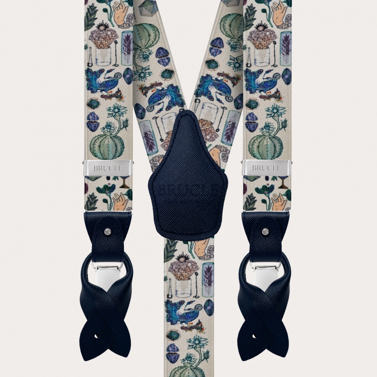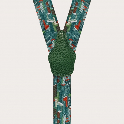 Y-shape elastic suspenders with clips, satin red. Entirely handmade in Italy, these suspenders are ideal to wear for nights out when you want to surprise your social gathering with a shiny, outstanding accessory.