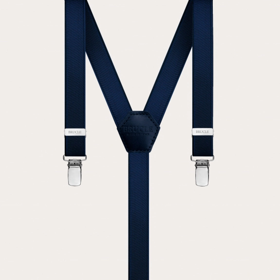 Immerse yourself in the universe of style and sophistication with the blue BRUCLE elastic satin ceremony suspenders, an accessory that embodies the essence of Italian artisanal fashion. These blue suspenders, crafted with care and skill by expert artisans, express a timeless elegance, perfect for the most formal and sophisticated events. The blue BRUCLE suspenders are the ideal choice for adding a touch of class to your ceremonial attire, thanks to their unique design and superior quality of elastic satin. The dark blue color blends perfectly with the shine of the elastic satin, giving a luxurious and seductive appearance to the entire accessory. Not just for ceremonies: use these elegant blue suspenders to create a stylish contrast, the result will be astonishing!