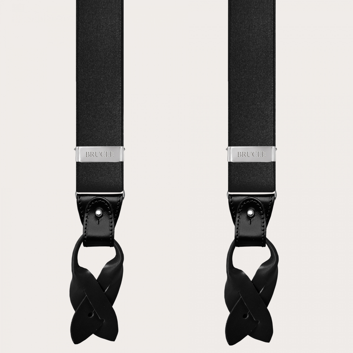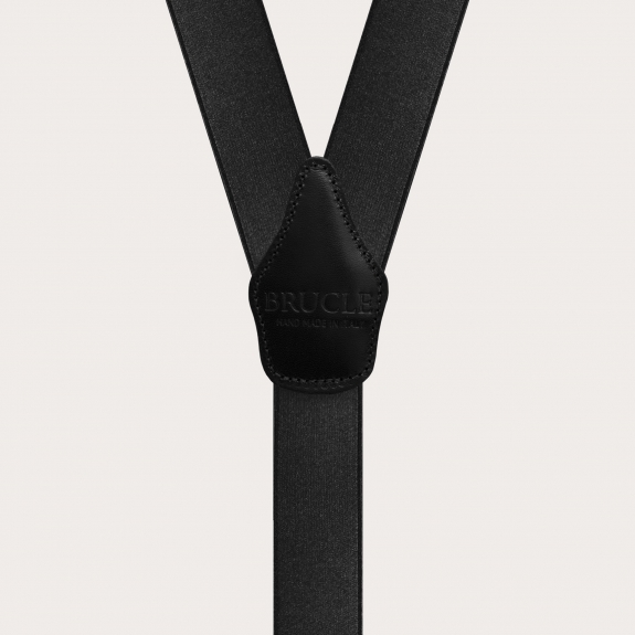 Y-shaped black shiny satin suspenders, double use, in high quality elastic satin.