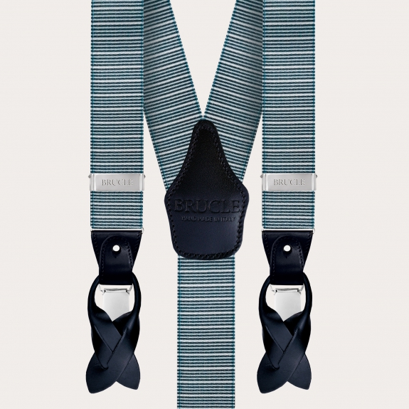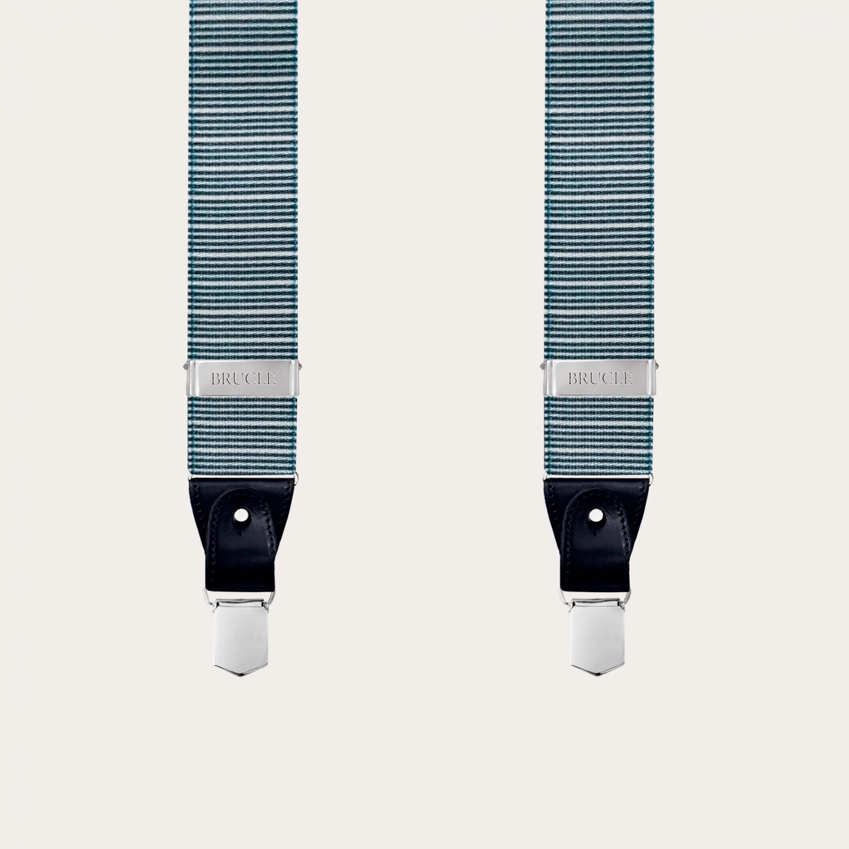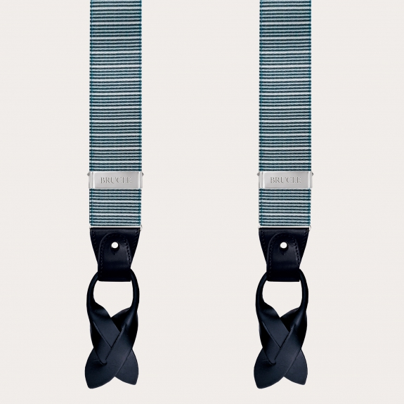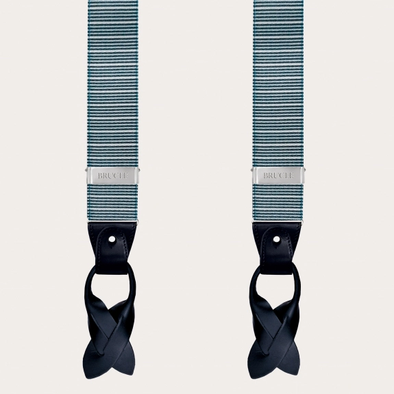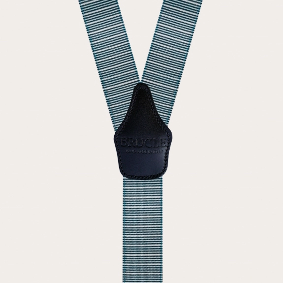 Braces with horizontal green and orange stripes. Original and classy, they are a model that does not go unnoticed.