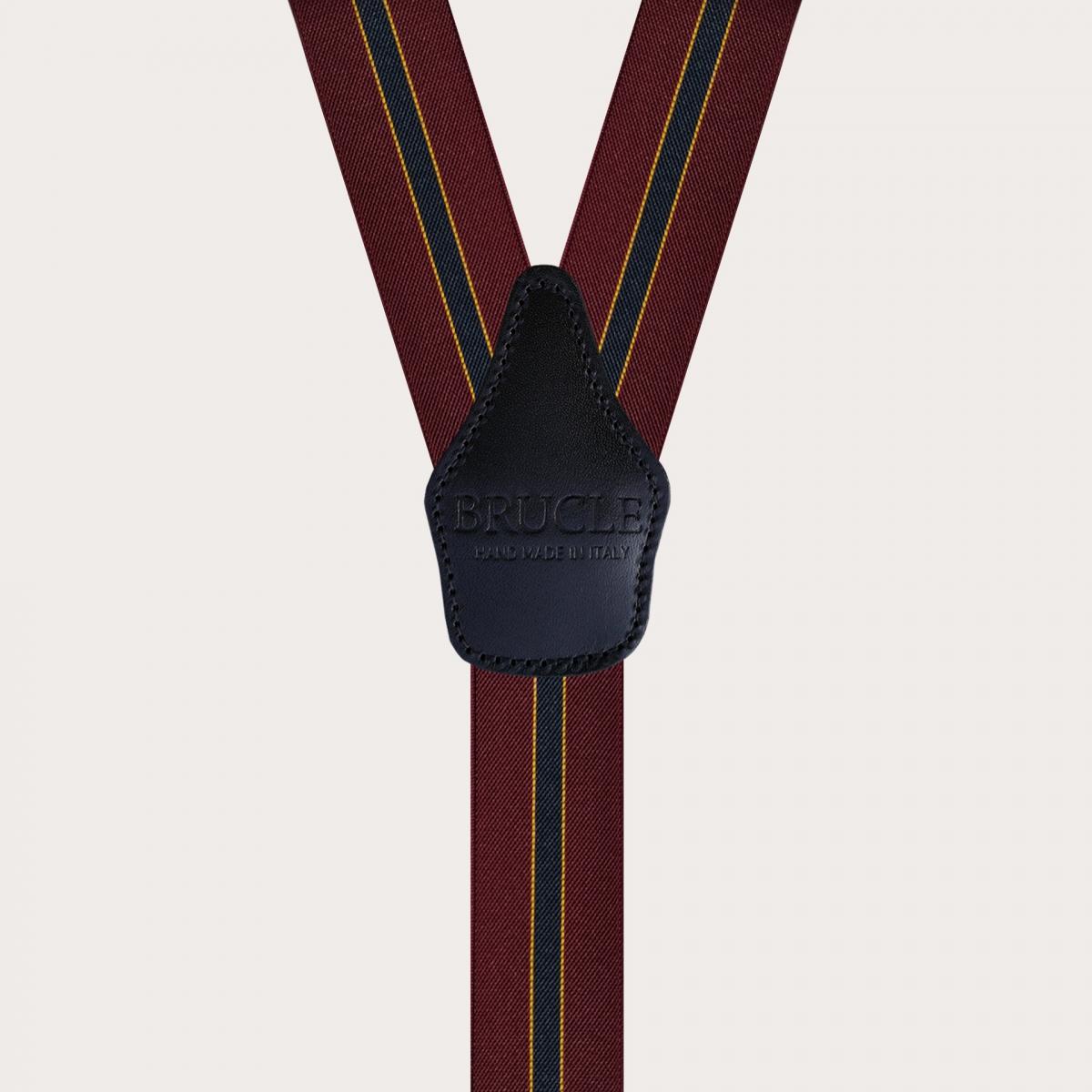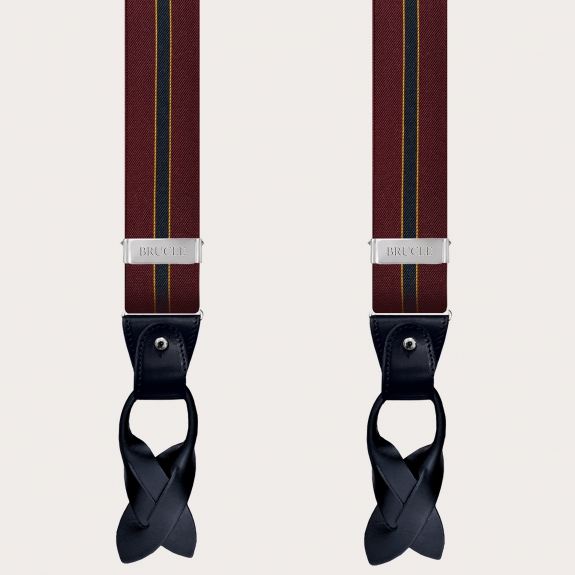 Regimental pattern braces in burgundy with genuine leather finishes.