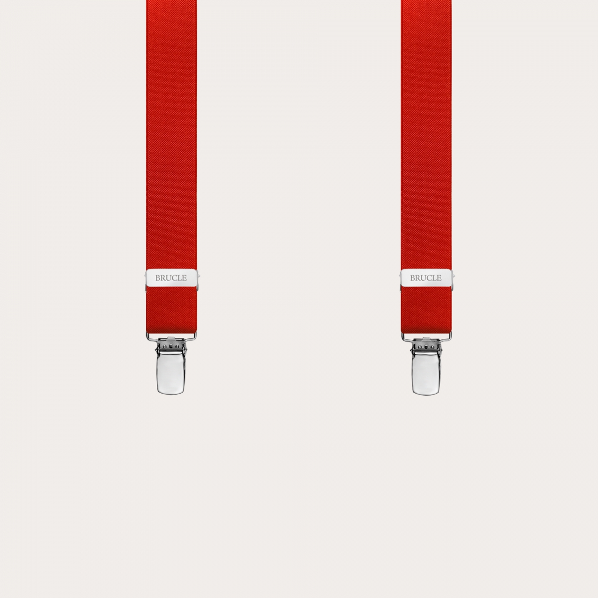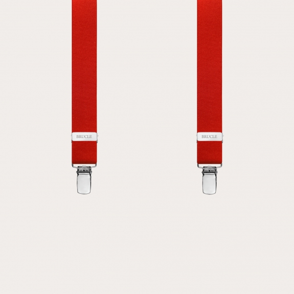 Y-shape elastic suspenders with clips, red. Slim and elegant elastic suspenders for both casual wear and formal occasions, entirely handmade in Italy.