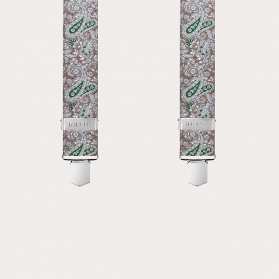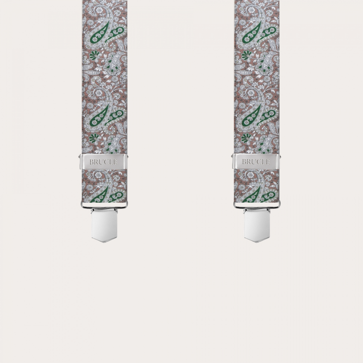 Unisex X suspenders with satin effect, brown and green cashmere pattern