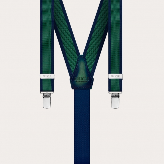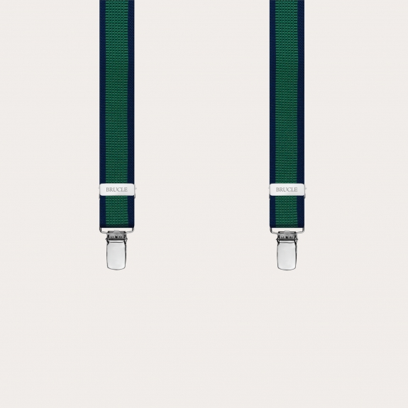 Thin nickel free unisex suspenders, green and blue