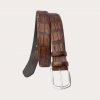 Men's belt in genuine leather with Glazed three-dimensional crocodile print, in a warm gold brown that enhances the beauty of the leather. An original belt perfect for a sophisticated look.