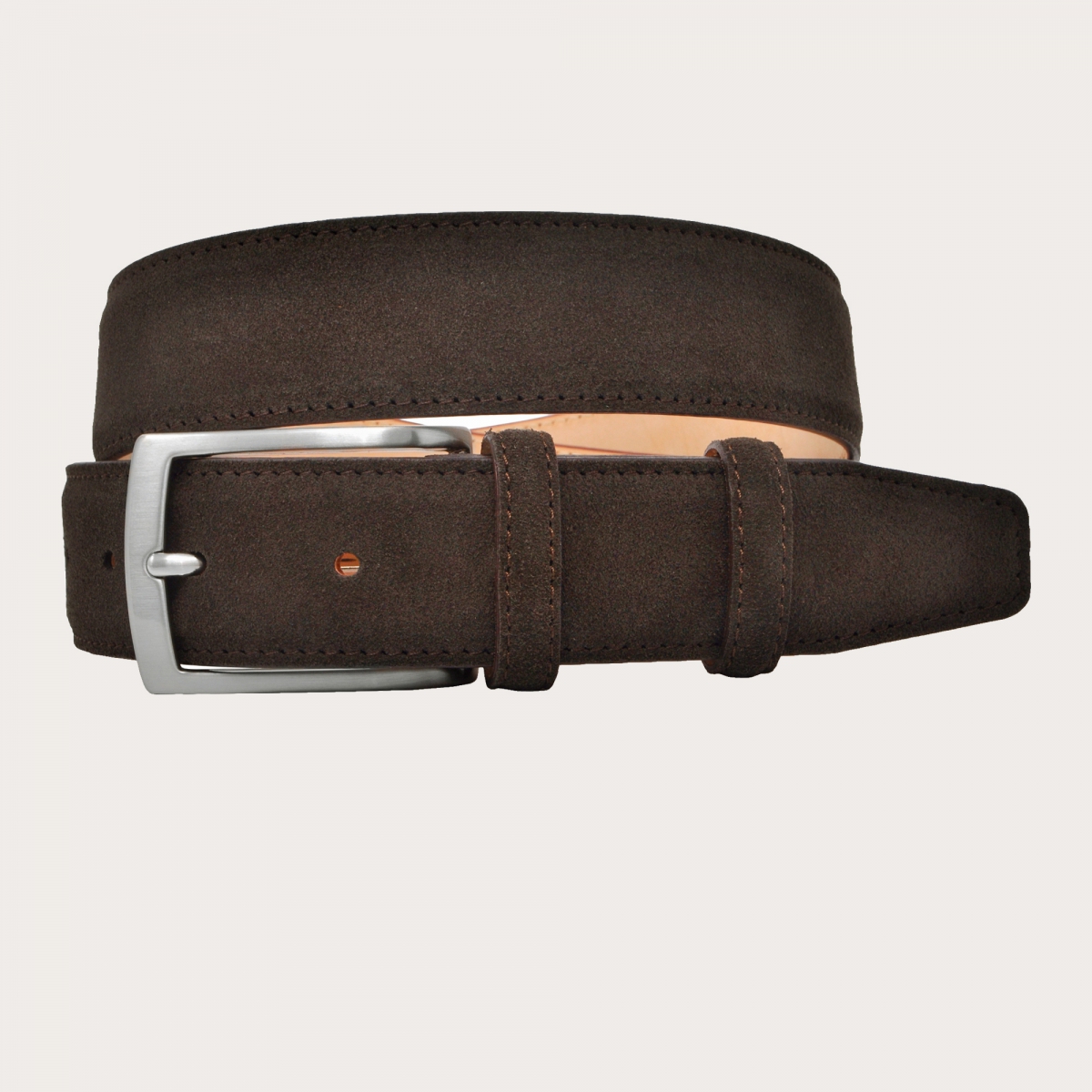 Express your unique style with our brown bark suede leather belt, an essential addition to any wardrobe thanks to its classic design and versatility. This elegant accessory is adorned with a satin silver solid brass buckle, guaranteed nickel-free, perfect for those seeking comfort while avoiding specific metal allergies.