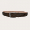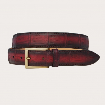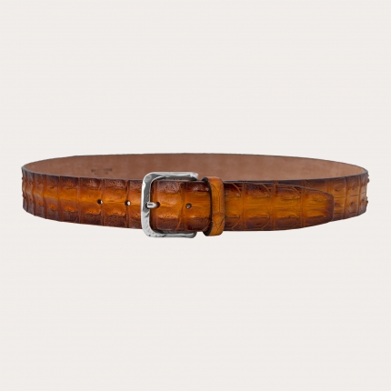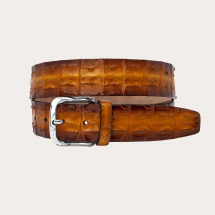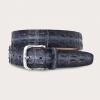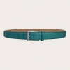 Men's belt in genuine crocodile flank leather. This blue belt is made even more elegant and embellished with a solid and durable silver-tone brass buckle. A belt with a timeless beauty.