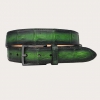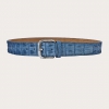 Luxury belt in alligator or crocodile leather with nickel-free buckle, blue shaded with black