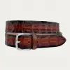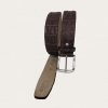 Discover the luxury dark brown crocodile belt, hand-colored with a patina effect.