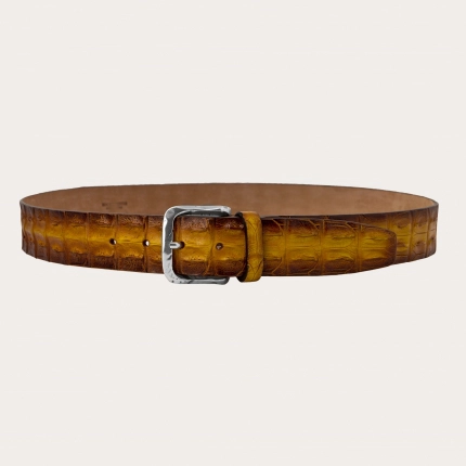 Hand-colored crocodile belt, gold shaded brown