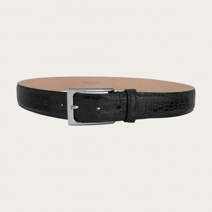 Genuine alligator nickel free leather belt, black