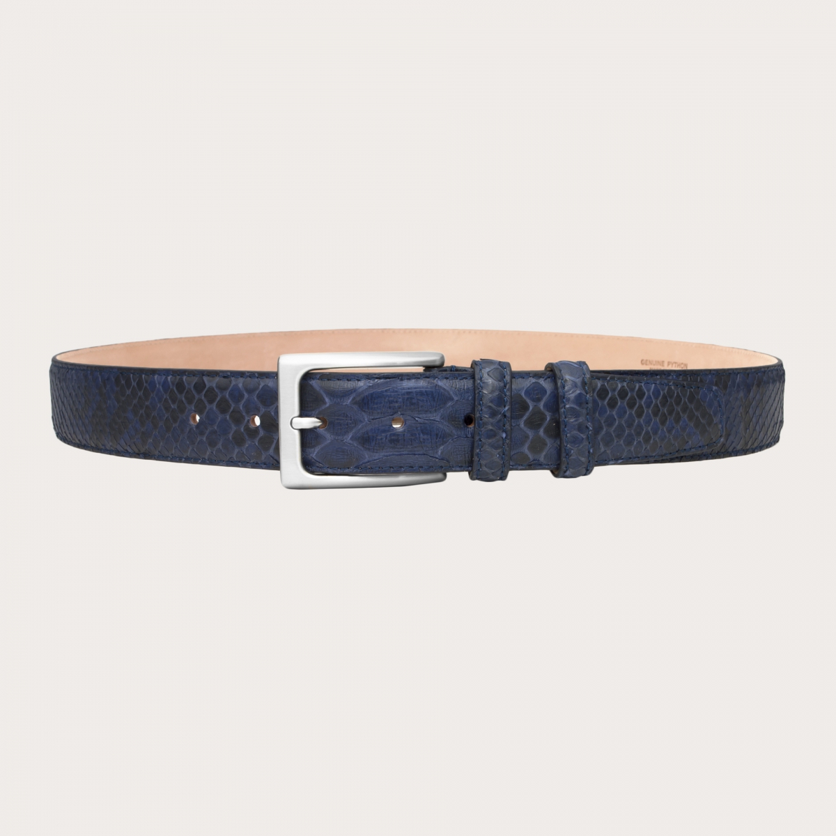 Blue belt in CITES certified genuine python skin. Embellished with a hand pad, it is made with the best exotic leathers and luxury finishes.