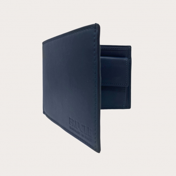 This handmade wallet is entirely crafted in Italy with the finest leathers, handled with care and passion. Like the entire BRUCLE men's wallet collection, this blue model with a coin pocket is also customizable with engravings of names, dates, or initials on both the inside and outside, making it even more exclusive. Presented in an elegant box, it makes a special gift idea.