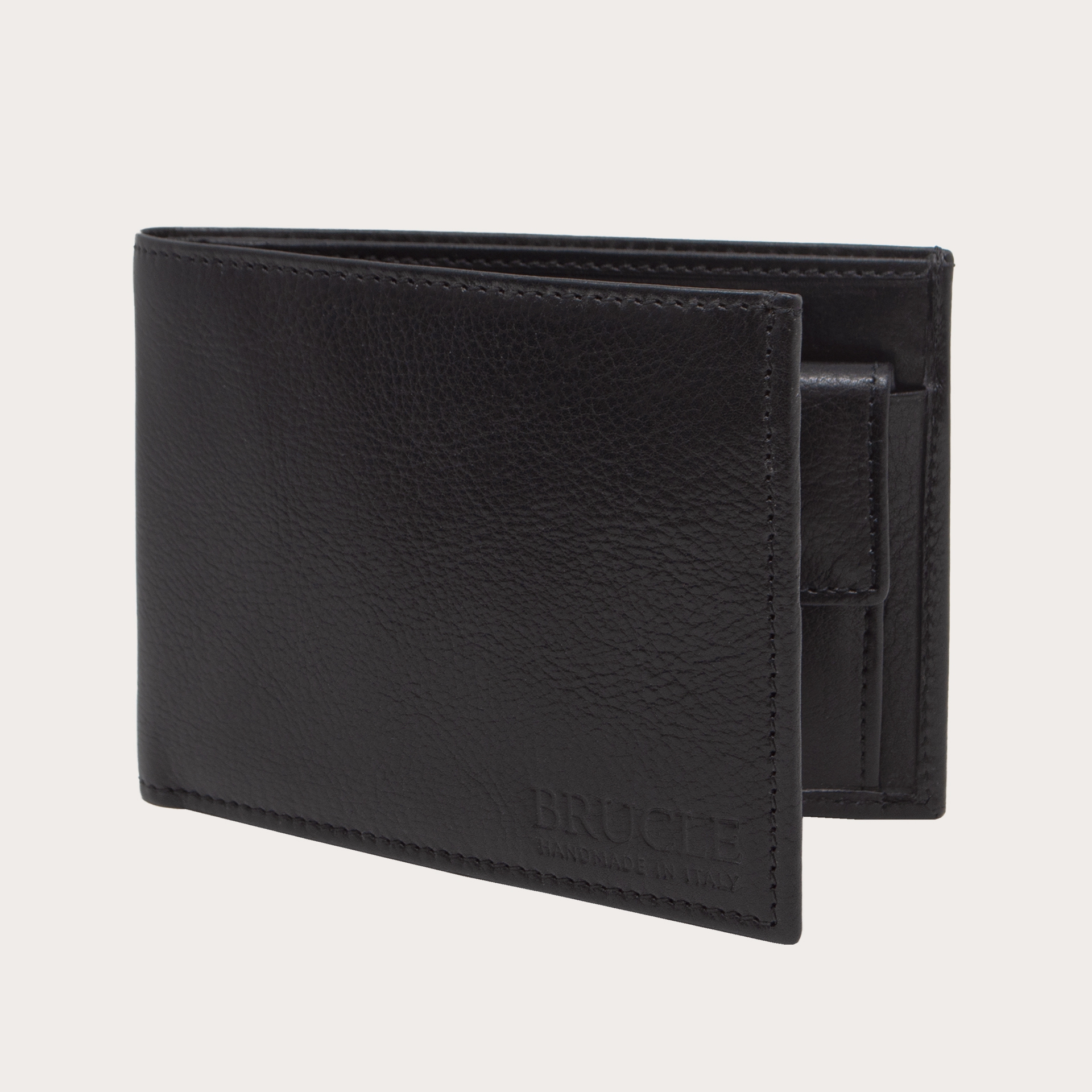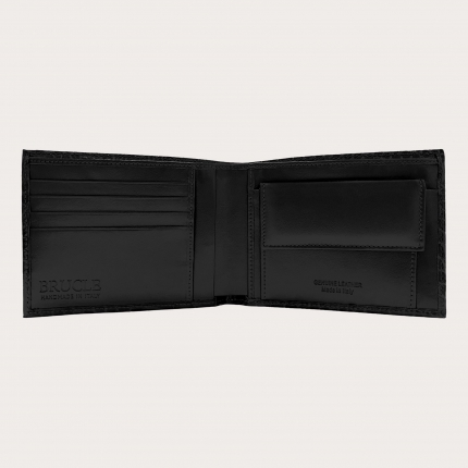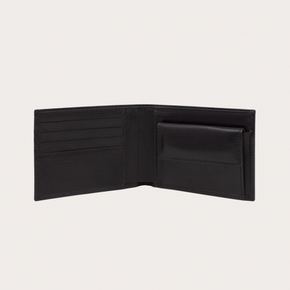Brucle Men's bifold leather wallet with coin purse, black